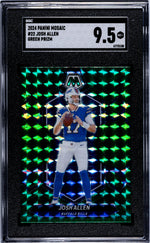 Step into the world of NFL with the captivating 2024 Mosaic #22 Josh Allen Green Prizm card. Manufactured by the esteemed Panini brand, this card exudes a rare charm that will surely enthrall both the ardent and casual collectors. The card features none other than the dynamic Josh Allen of the Buffalo Bills, a player who has left an indelible mark on the field with his phenomenal performance.