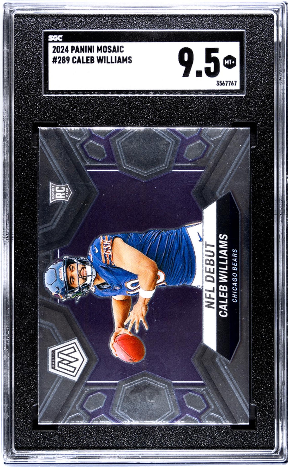 Step into the world of collectible sports cards with this exceptional offering. Presenting the 2024 Panini Mosaic NFL Debut card of the promising player, Caleb Williams. This is a rookie card, making it an even more exciting find for collectors and fans alike.