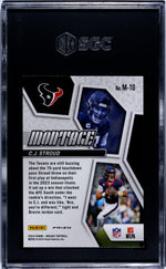 This 2024 Mosaic M-10 C.J. Stroud card does not include autographs or memorabilia, but it shines in its simplicity and elegance. Its key features include the Panini Mosaic brand, Montage insert set, Silver No Huddle Prizm parallel, and the fact that it features the outstanding NFL quarterback C.J. Stroud, making it a must-have for any avid NFL or Texans fan.