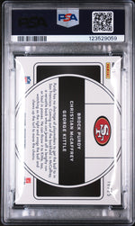 Experience the thrill and excitement of owning this spectacular Panini Obsidian Nucleus card that features not one, but three NFL stars - Brock Purdy, Christian McCaffrey, and George Kittle, all from the renowned San Francisco 49ers. This card is a stunning representation of the 2024 season, a memorable year in the NFL.