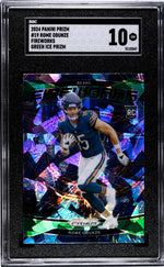 The '2024 Prizm #19 Rome Odunze SGC 10' is an absolute must-have for any sports card collector. Boasting key features like the Green Ice Prizm finish, Rookie Card status, a Gem Mint 10 grade by SGC, and the Fireworks Insert, this card is a tribute to the Bears team and the vibrant spirit of NFL. Add this exceptional piece to your collection and celebrate your love for the game in style!