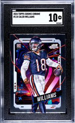 Immerse yourself in the world of football memorabilia with this stunning 2024 Topps Chrome #118 Caleb Williams rookie card. From the esteemed manufacturer Topps, this card is a part of the coveted 'Topps Cosmic Chrome' set, a must-have collection for any serious collector.