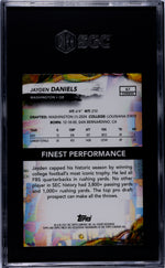 Step into the thrilling world of sports card collecting with this extraordinary 2024 Topps Finest #67 Jayden Daniels rookie card. Produced by the eminent manufacturer, Topps, this card is part of their sought-after 'Finest Performance' insert set, ensuring its place as a standout piece in any collection.