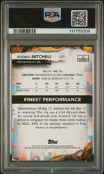 Immerse yourself in the world of sports memorabilia with this highly sought-after 2024 Finest #85 Adonai Mitchell card. Manufactured by the industry-leading Topps, this card is a part of the prestigious 'Finest' series and boasts a vibrant and rare Red Geometric parallel design that instantly catches the eye.