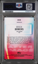 As a 1/1 Superfractor parallel, this card stands alone in its rarity and exclusivity, offering an unmatched addition to any collection. The card showcases Brock Bowers, the phenomenal rookie from the Las Vegas team, captured in a moment of sheer athletic prowess.
