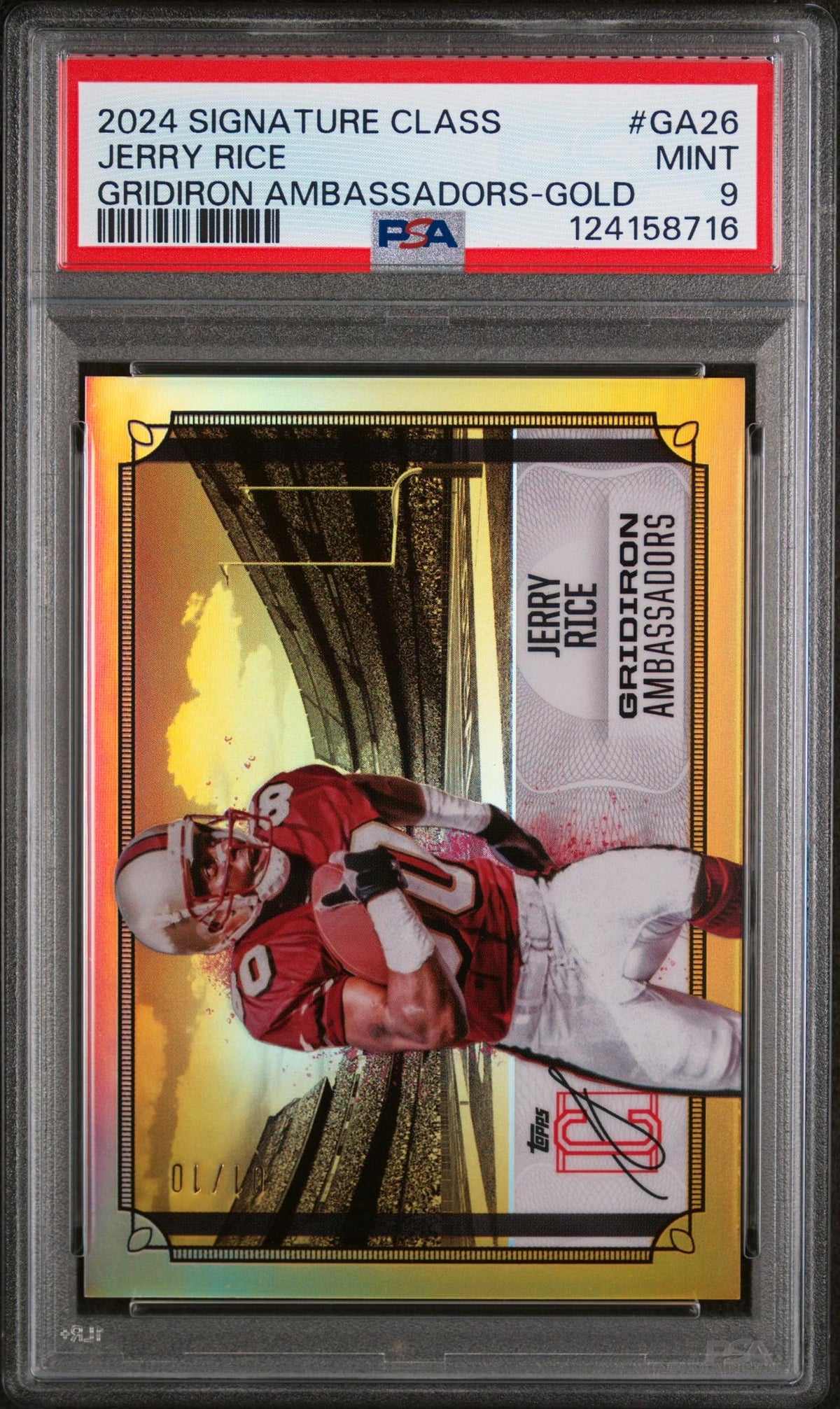 2024 Topps Signature Class Gridiron Ambassadors Gold Jerry Rice #GA26 /10 PSA 9