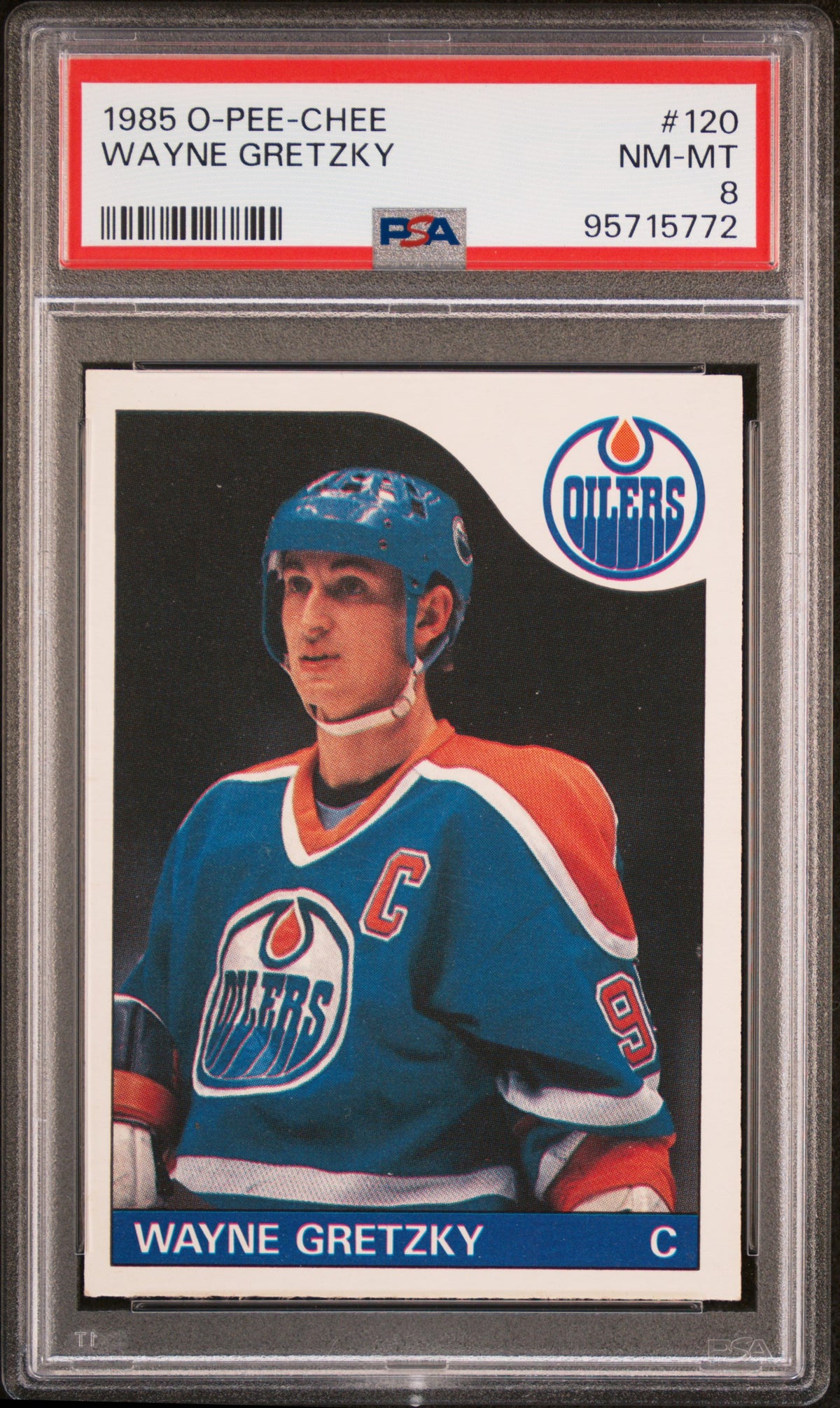 Indulge yourself in the world of sports memorabilia with this exquisite 1985 O-Pee-Chee Hockey Card, featuring none other than the legendary Wayne Gretzky. This card, number 120 in the set, is a testament to the golden era of the NHL, when Gretzky reigned supreme with the Edmonton Oilers.