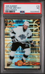 This elegant piece of hockey history, categorized under 'Hockey', provides an opportunity for enthusiasts to dive deep into the sports world of the mid-90s. While it doesn't carry any particular rarity, specialty, or character description, its key features highlight its value: Wayne Gretzky, GM's Choice, 1995 Summit, Los Angeles Kings, PSA graded, NHL, Pinnacle brand.