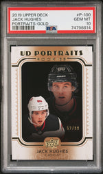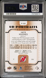 2019 Upper Deck UD Portraits Rookies Gold Jack Hughes #P-100 /99 PSA 10