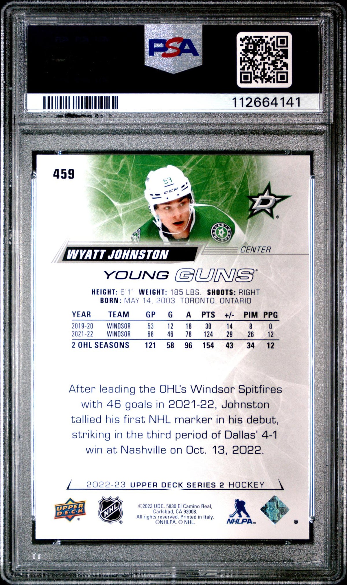 This Wyatt Johnston card is a treasure for any hockey enthusiast or a collector seeking to enrich their collection with a piece of NHL history. It signifies the beginning of Johnston's professional career, making it a card of significant potential and worth. Its high grading and quality make it a must-have, promising not only a visual treat but also an investment for the future.