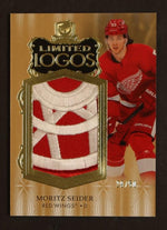 The card is a part of the coveted 'Limited Logos' insert set, adding another layer of desirability and value to it. Featuring Red Wings' star Moritz Seider, this card is a must-have for any fan or collector. The card captures the skill and charisma of Seider, making it a fantastic piece for enthusiasts.