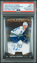 Whether you're a die-hard Canucks fan, a dedicated follower of Lekkerimaki, or a sports card enthusiast looking to add value to your collection, this card is a perfect choice. Its key features of being autographed, part of the Rookie Autographs set, and professionally graded by PSA makes it a standout piece. This 2024 Platinum R-LE Jonathan Lekkerimaki card is not just a collectible, but a testament to a promising career in the making. Don't miss out on the opportunity to own this piece of sports history.