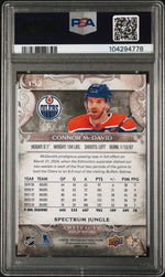 Featuring a stunning depiction of the NHL's Oilers star player, Connor McDavid, this card is a testament to his skill and power on the ice. This isn't a rookie card, it's a card that showcases a player who has already proven his worth in the league, making it a cherished addition to any collection.
