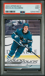 Indulge in the thrill of collecting sports memorabilia with this spectacular 2024 Upper Deck #451 MACKLIN CELEBRINI card. This exquisite piece, produced by the renowned manufacturer Upper Deck, is part of the coveted 'Young Guns' Insert Set - a must-have for any avid collector or NHL fan.