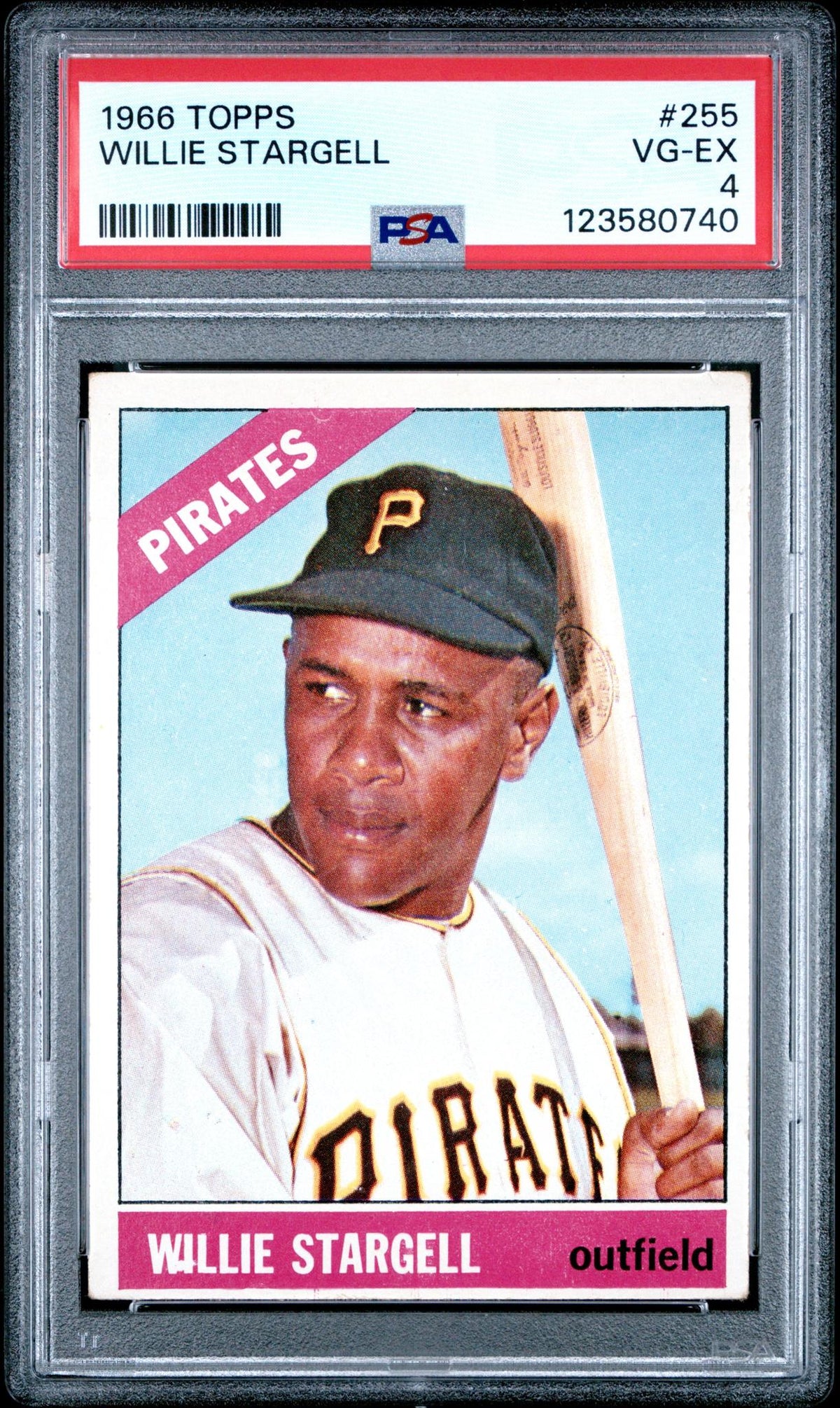 Key features of this card include its 1966 issue, its representation of Willie Stargell, its association with the Pittsburgh Pirates, and its grading by PSA. This is not merely a card; it's a piece of sporting history, a collectible item that carries with it the echoes of cheering crowds and the thrill of the game. Add this 1966 Topps #255 Willie Stargell PSA 4 card to your collection and own a piece of baseball history.