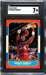 Feast your eyes on this gem, a 1986 Fleer #7 Charles Barkley card, a coveted piece in the world of sports memorabilia. This card captures the beginning of a legendary career, marking it as a valuable rookie card. Manufactured by Fleer, a renowned name in the card industry, it guarantees quality and authenticity.