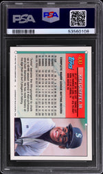 Indulge in the nostalgia of the 90s with this breathtaking 1994 Topps Ken Griffey Jr. #400, handsomely preserved with a PSA 8 rating. This card is a true gem, encapsulating the golden era of baseball with one of the game's greatest icons, Ken Griffey Jr.