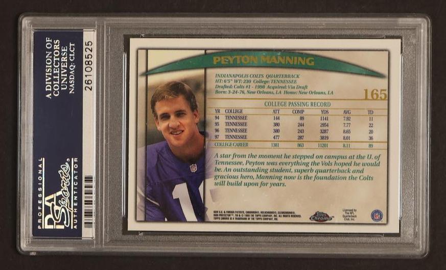 Don't miss out on adding this 1998 Topps Chrome #165 Peyton Manning card to your collection today. It's a perfect blend of sports history and collectible appeal, sure to be the pride of any collection it graces.