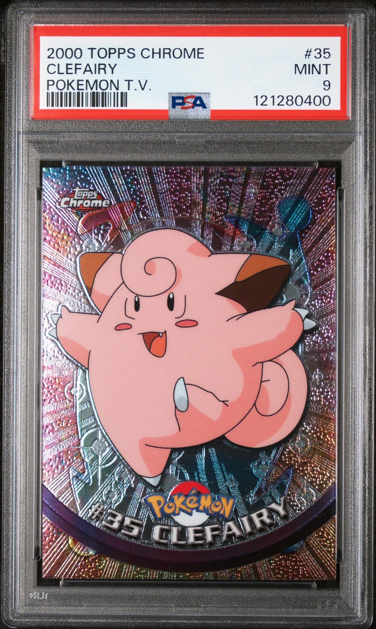 Immerse yourself in the nostalgia of the golden era of Pokemon with this highly sought-after 2000 Topps Chrome #35 Clefairy PSA 9 card. This stunning card, a gem from the renowned Topps Chrome brand, is a must-have for any serious Pokemon collector.