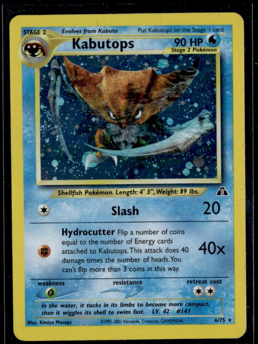 To sum it up, this 2001 Pokemon 6/75 Kabutops card is more than just a collectible. It's a piece of Pokemon history that offers a slice of the past while also providing a thrilling sense of adventure for the present. Don't miss the chance to own this remarkable piece of the Pokemon universe!