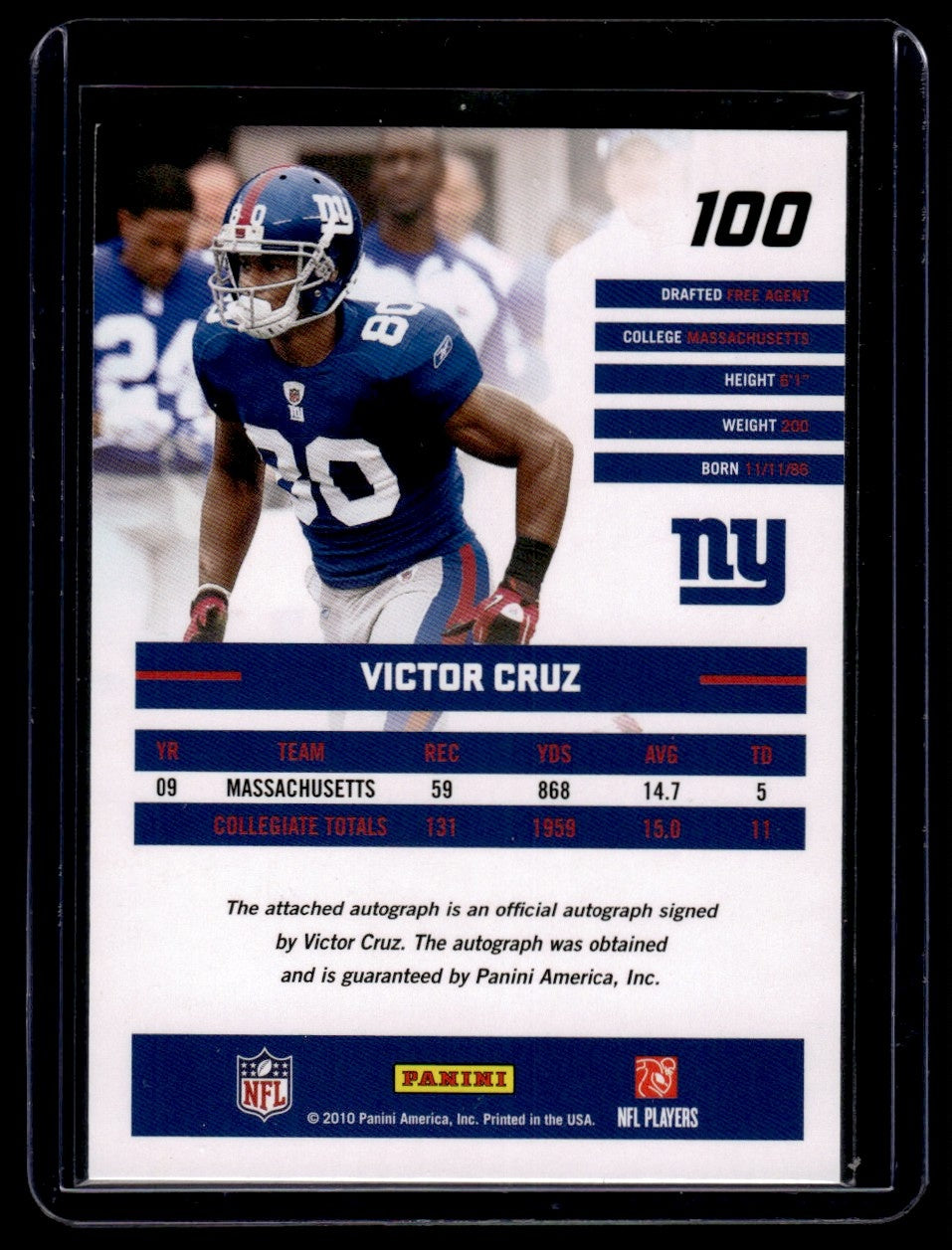 This card is not just a piece of paper, but a piece of history. It encapsulates Victor Cruz's early journey in the NFL, making it a must-have for any serious collector or New York Giants fan. The card boasts an autograph from Cruz himself, adding a personal touch that enhances its value and appeal.