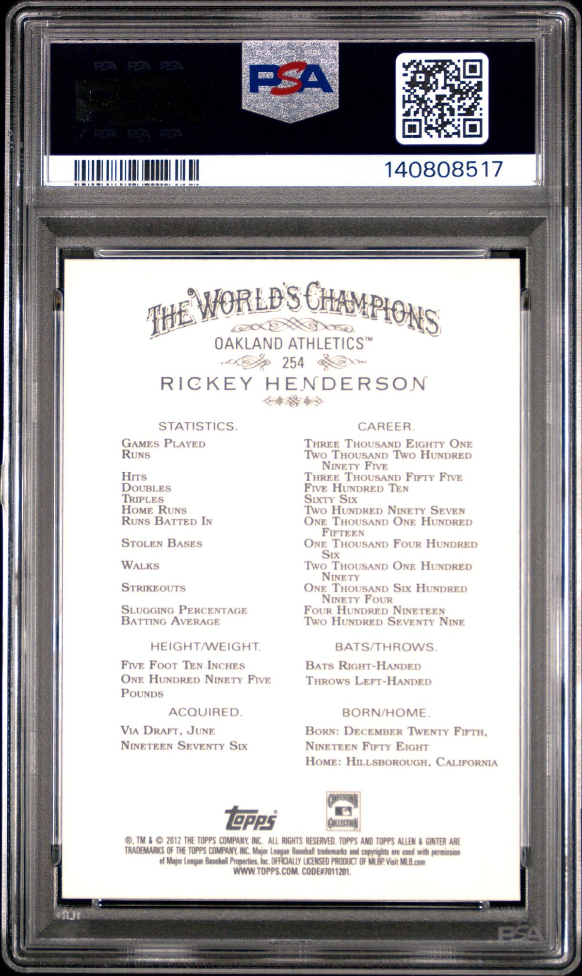 Whether you're a long-time collector or new to the world of sports cards, this Rickey Henderson card would make an extraordinary addition to any collection. Its impeccable condition, certified by PSA, and its connection to a baseball legend make it a must-have piece. Don't miss out on the chance to own this exceptional piece of sports history.