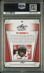 Behold the majesty of this stunning 2017 Leaf Draft #07 Pat Mahomes II Silver card! A prized gem from the Leaf Draft Silver Set, this card features NFL superstar and Kansas City Chiefs quarterback, Pat Mahomes II. It's not just any card, but a rookie card, capturing the promising early days of Mahomes' professional career. The card's silver parallel finish adds an extra layer of sophistication and elegance, making it a standout addition to any sports card collection.