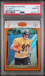 This card is a must-have for any avid NFL, Pittsburgh Steelers, or T.J. Watt fan. Its stunning visuals, unique 'Mirror Orange' parallel, and the fact that it's serial numbered, contribute to its appeal. With its Gem Mint status, it's not just a card; it's a piece of sports history. Don't miss out on owning this piece of T.J. Watt's legacy.