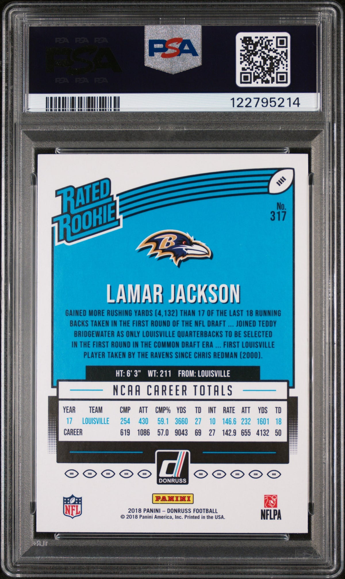 2018 Panini Donruss Rated Rookie Lamar Jackson #317 RC PSA 9