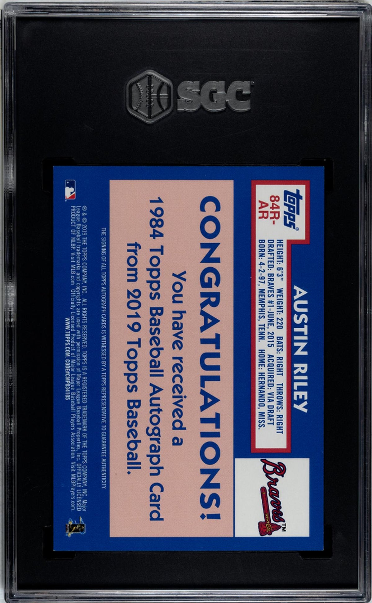 2019 Topps Update '84 Topps Design Austin Riley #84R-AR RC Auto SGC 9