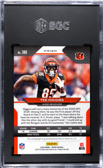 The card, a true collector's gem, is a rookie card, marking the start of Tee Higgins' journey in the NFL. It has been professionally graded by SGC, a highly reputable grading company, and has received an impressive numeric grade of 9.5, denoting a 'Mint+' condition. This speaks volumes about the card's excellent state and preservation, making it an appealing addition to any sports card collection.