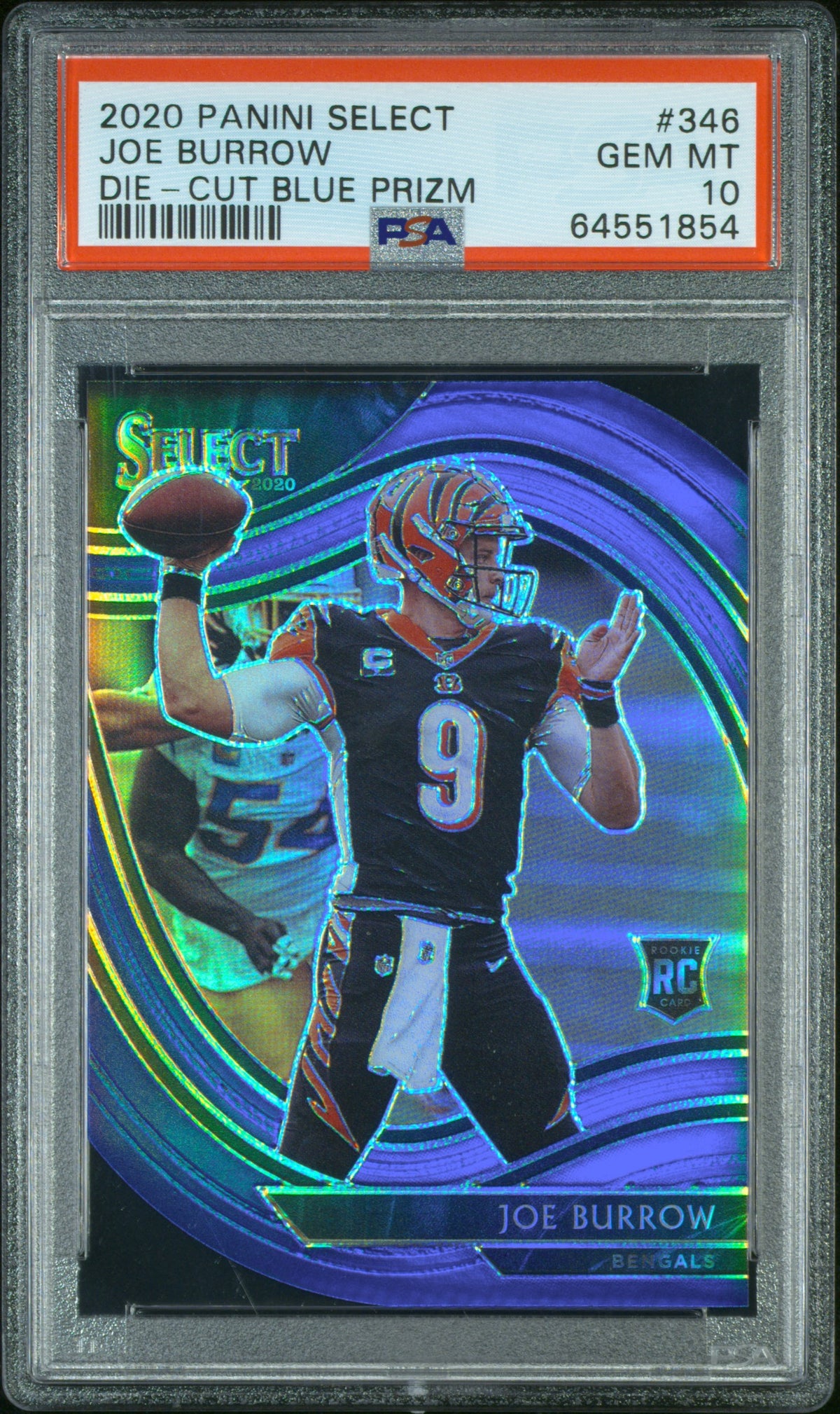2020 Panini Select Die-Cut Blue Prizm Joe Burrow #346 RC Field Level PSA 10
