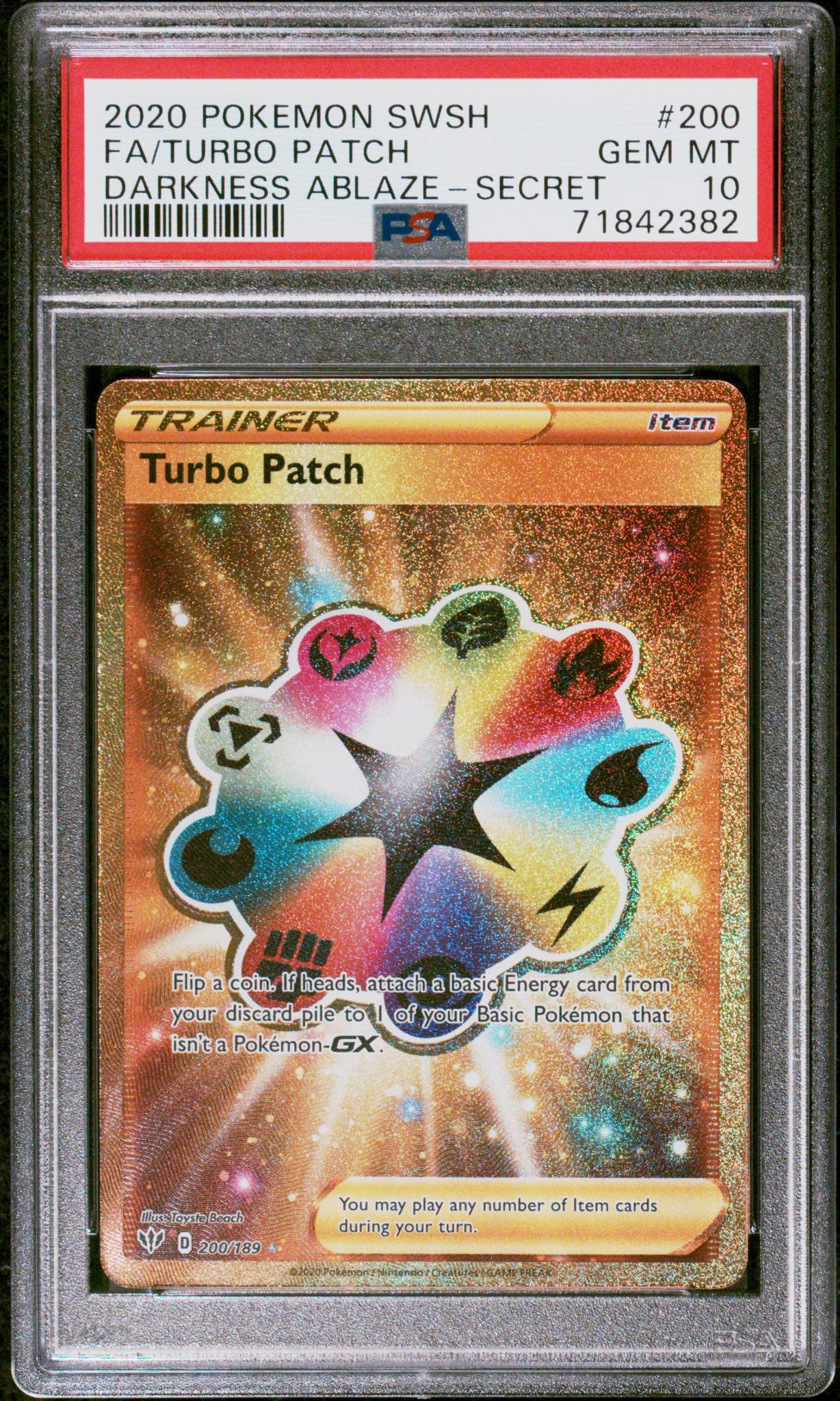 From its Secret Rare status to its PSA Gem Mint 10 grade, every aspect of this card has been designed to impress. Whether you're a seasoned collector or a new Pokemon enthusiast, this Turbo Patch card from the Sword & Shield series would make a brilliant addition to your collection. Just imagine the thrill of holding this piece of Pokemon history in your hands!