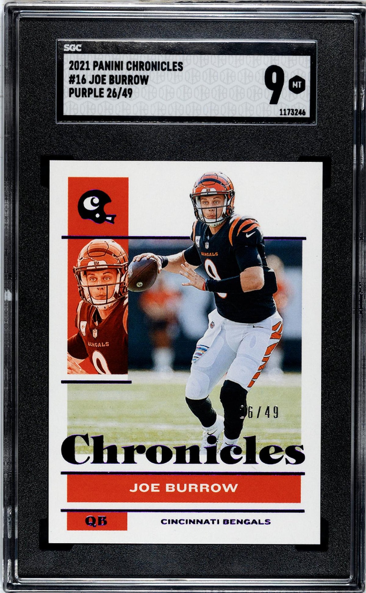 Whether you're a die-hard fan of the Cincinnati Bengals, a follower of Joe Burrow's blossoming career, or a discerning collector who appreciates the value of high-quality sports cards, this 2021 Panini Chronicles card is a must-have. Its rarity, aesthetic appeal, and connection to one of NFL's promising talents make it a card worth owning. Make this gem a part of your collection and experience the joy of owning a piece of sports history.