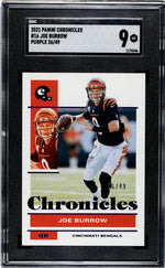Dive into the world of sports card collecting with this exceptional 2021 Panini Chronicles card featuring the dynamic and talented Joe Burrow of the Cincinnati Bengals. Manufactured by the widely respected Panini, this card belongs to the esteemed 'Chronicles' series, a set that has secured its place in the hearts of NFL aficionados and collectors around the globe.