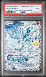 Feast your eyes on this stunning 2021 'Reshiram' card from the iconic Pokemon Celebrations collection. Manufactured by Pokemon and part of the highly sought-after 'Classic Collection', this card is a must-have for any serious collector.