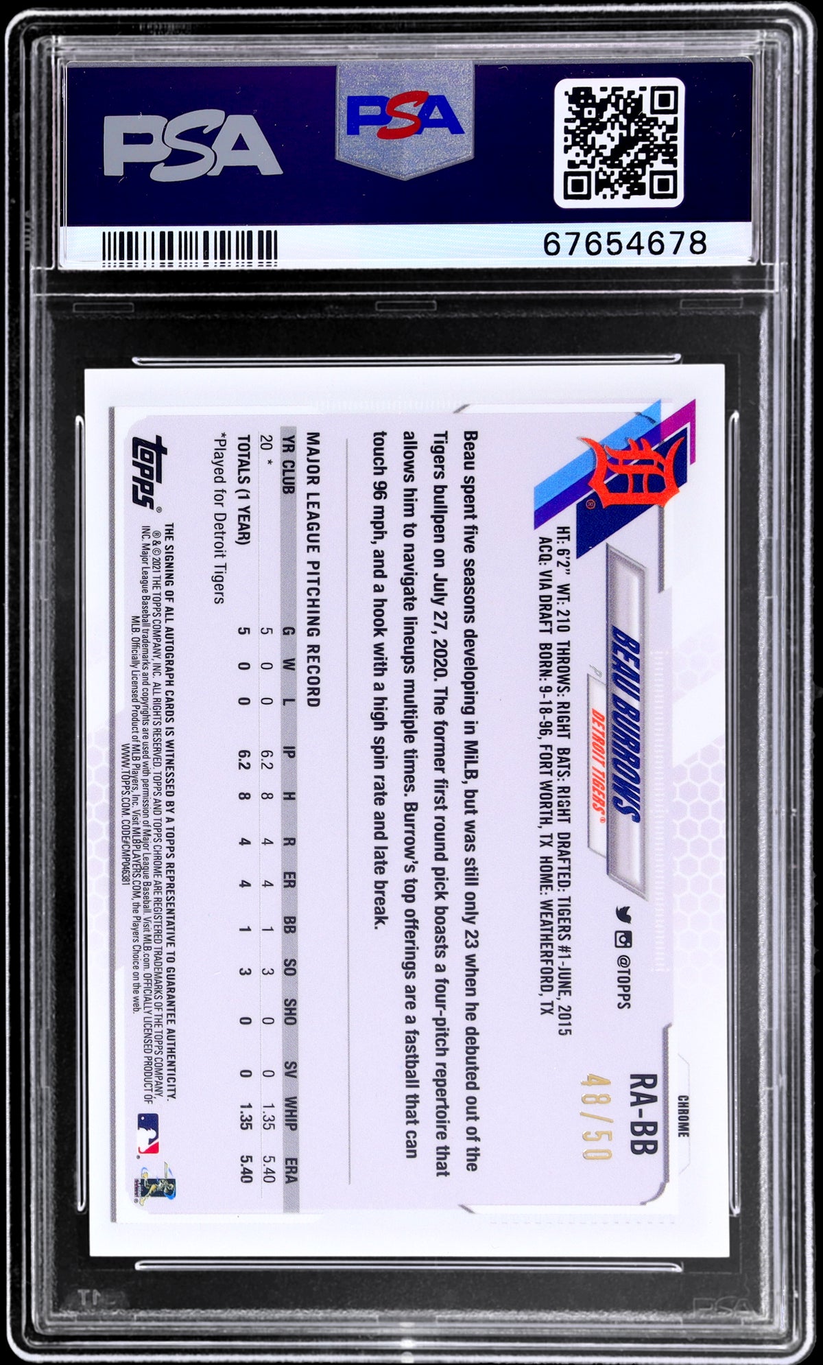 Whether you're a seasoned collector, a dedicated fan of Beau Burrows, or a new enthusiast in the world of sports cards, this 2021 Topps Chrome Rookie Autograph Gold Refractor card is a magnificent addition to any collection. The card's inherent value and potential for growth make it a worthwhile investment.