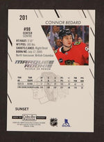 This card is not autographed or professionally graded, leaving it in its original, untouched state -- a true reflection of its authenticity. Its key features include being a Rookie card, its Sunset parallel design, its inclusion in the Marquee Rookies insert, and its representation of the sensational player, Connor Bedard, and his team, the Chicago Blackhawks.