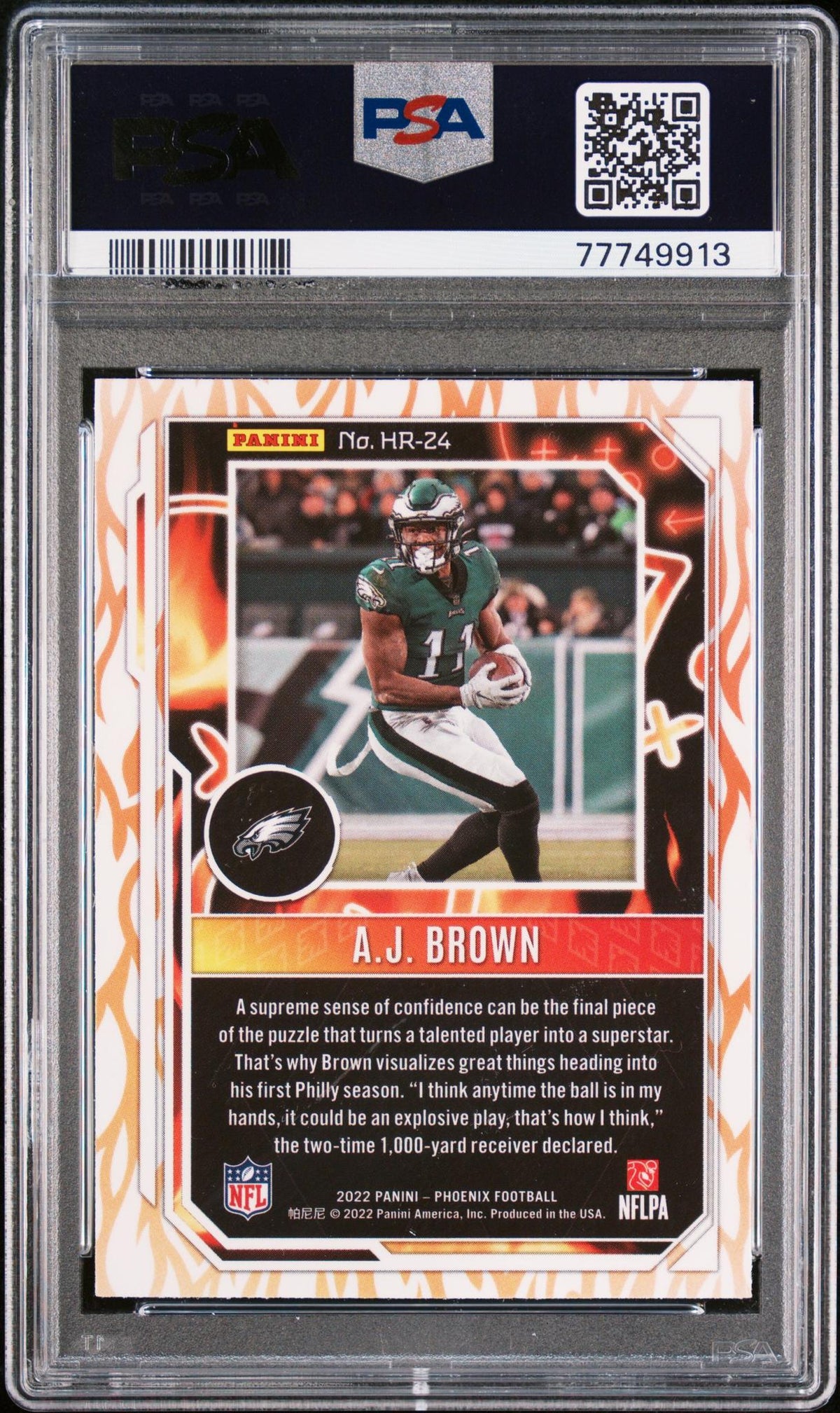 Featuring crisp, vibrant graphics and a stunning depiction of A.J. Brown, this card is a must-have for any sports card collector, NFL enthusiast, or Philadelphia Eagles fan. Its mint condition and high grading score are a testament to its superior quality and preservation, making it a prized possession.