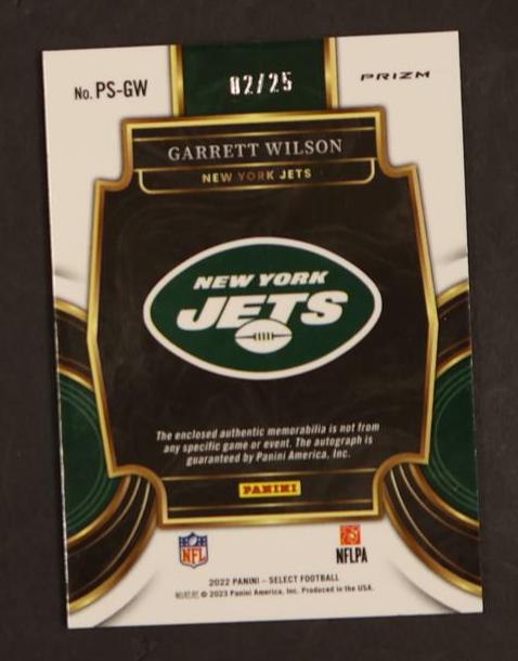 In summary, this 2022 Select PS-GW Garrett Wilson card possesses key features that make it a must-have for any serious collector. Its combination of rookie status, autograph, jersey memorabilia, limited edition serial number, prizm finish, and association with the New York Jets and NFL are the perfect recipe for a prized possession. Don't miss out on owning a piece of sports history with this remarkable card.