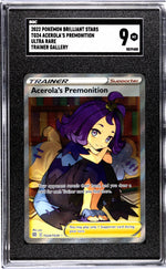 Adding to its allure, this card doesn't include any memorabilia, keeping the focus solely on Acerola's mesmerizing art, making it a true tribute to the character. The key features of this card are its ultra-rare status, its part in the Brilliant Stars set, its inclusion in the Trainer Gallery, and its mint condition, all of which have been verified by SGC.