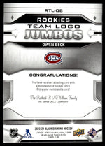 Showcase your love for hockey with this stunning 2023 Upper Deck Black Diamond RTL-OB Owen Beck Team Logo Jumbos Rookie Patch. This card features a striking design, with an impressive jumbo team logo patch that truly stands out. The card is a testament to Beck's budding career with the Montreal Canadiens, a team known for its rich history and passionate fan base.