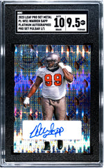 Step into the world of sports cards with this incredible Warren Sapp Leaf Pro Set Metal Card. This isn't just any card, it's a fantastic Platinum Autographed Pro Set Pulsar, giving it an added layer of exclusivity and allure.