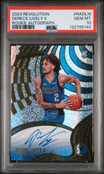 Feast your eyes on this gem of a card! From the iconic sports card manufacturer, Panini, comes this dazzling 2023 Revolution 'Rookie Autograph' Card featuring the dynamic Dereck Lively II.