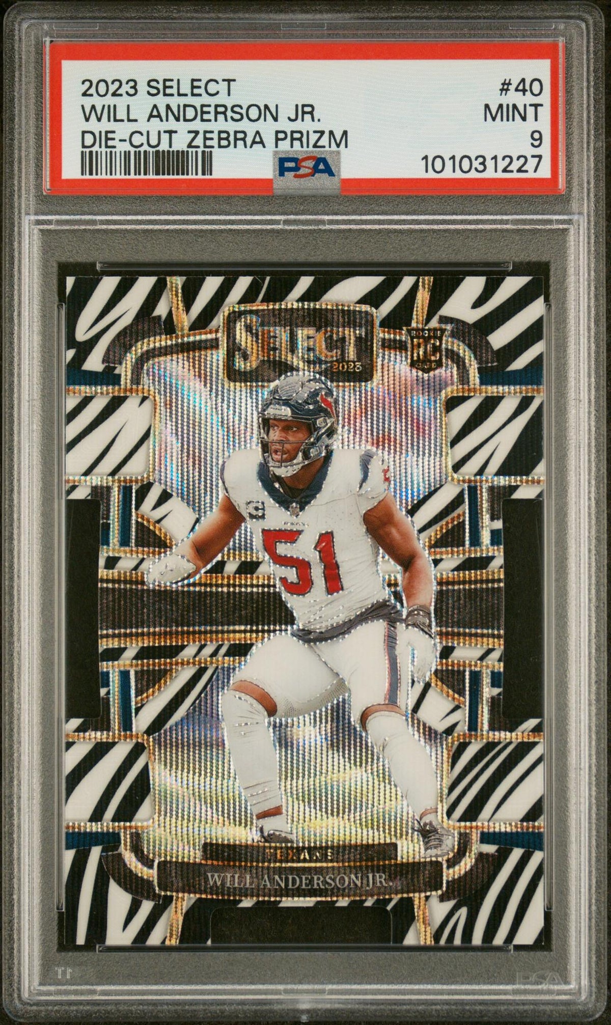 Uncover a gem in this 2023 Panini Select Football Card featuring the sensational rookie, Will Anderson Jr. of the Texans. As part of the esteemed Select collection, this card is a true testament to Anderson's promising career in the NFL, making it a must-have for any serious collector.