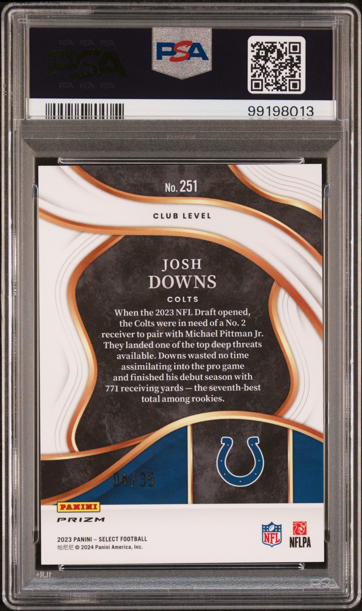 Immerse yourself in the world of football with this remarkable 2023 Panini Select Josh Downs Rookie Card. This rare gem is a White Prizm parallel card, an exclusive feature that truly sets it apart. It's not just another card; it's card number 251 from the esteemed Select Club Level set.