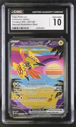 Step into the electric world of Pokemon with our captivating Tapu Koko ex card! This exquisite gem from Nintendo is part of the illustrious Paradox Rift set, where it shines as a Special Illustration Rare card. The card is not just extraordinarily rare; it's also in Gem Mint condition - a perfect 10 score from the prestigious CGC grading company. This ensures you're getting a card of unmatched quality and pristine condition.