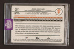 Autographed by Jung Hoo Lee himself, this card holds an authentic signature that brings it to life. You can almost hear the crack of the bat and the roar of the crowd as you hold this piece of sporting history in your hands. This is not just a card, but a tangible piece of Lee's early career, a memento of his rookie year with the San Francisco Giants.