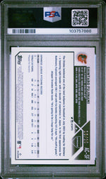 This card is a rare find, being one of just 25 in existence. Its unique Orange Wave Refractor design adds an extraordinary touch to its visual appeal, ensuring it stands out in any display case. The card is in mint condition, professionally graded as 9 by PSA, one of the most trusted names in card grading, further establishing its impeccable quality.