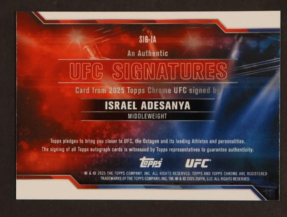 This 2023 Topps Chrome SI-IA Israel Adesanya card is more than just a sports card; it's a connection to the sport you love, a piece of UFC history, and a tribute to an incredible athlete all in one. Don't miss the chance to own this piece of UFC memorabilia, a testament to a sport and a player that continue to captivate audiences worldwide.